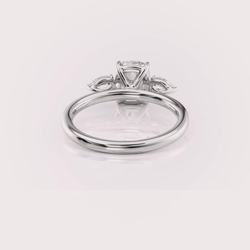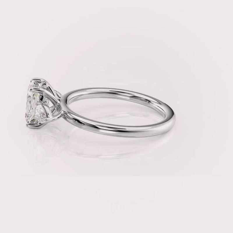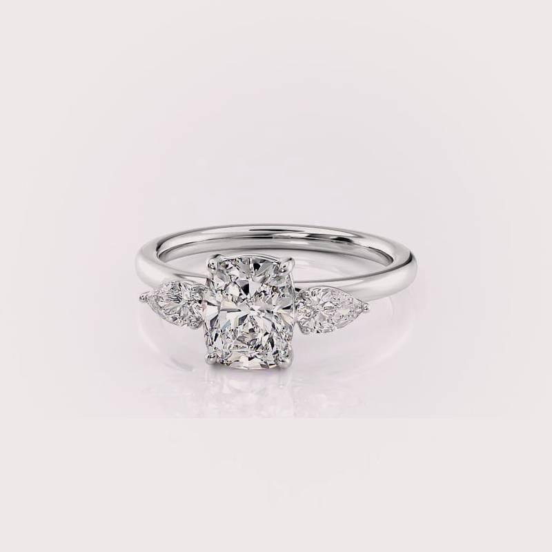 แหวนหมั้นเพชรทรงคุชชั่นคัท เพชรเลี้ยงในห้องปฏิบัติการ รับรองโดย IGI ประดับเพชรทรงลูกแพร์ด้านข้าง ตัวเรือนเงินแท้ 925 ชุบโรเดียม