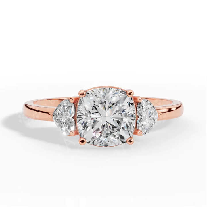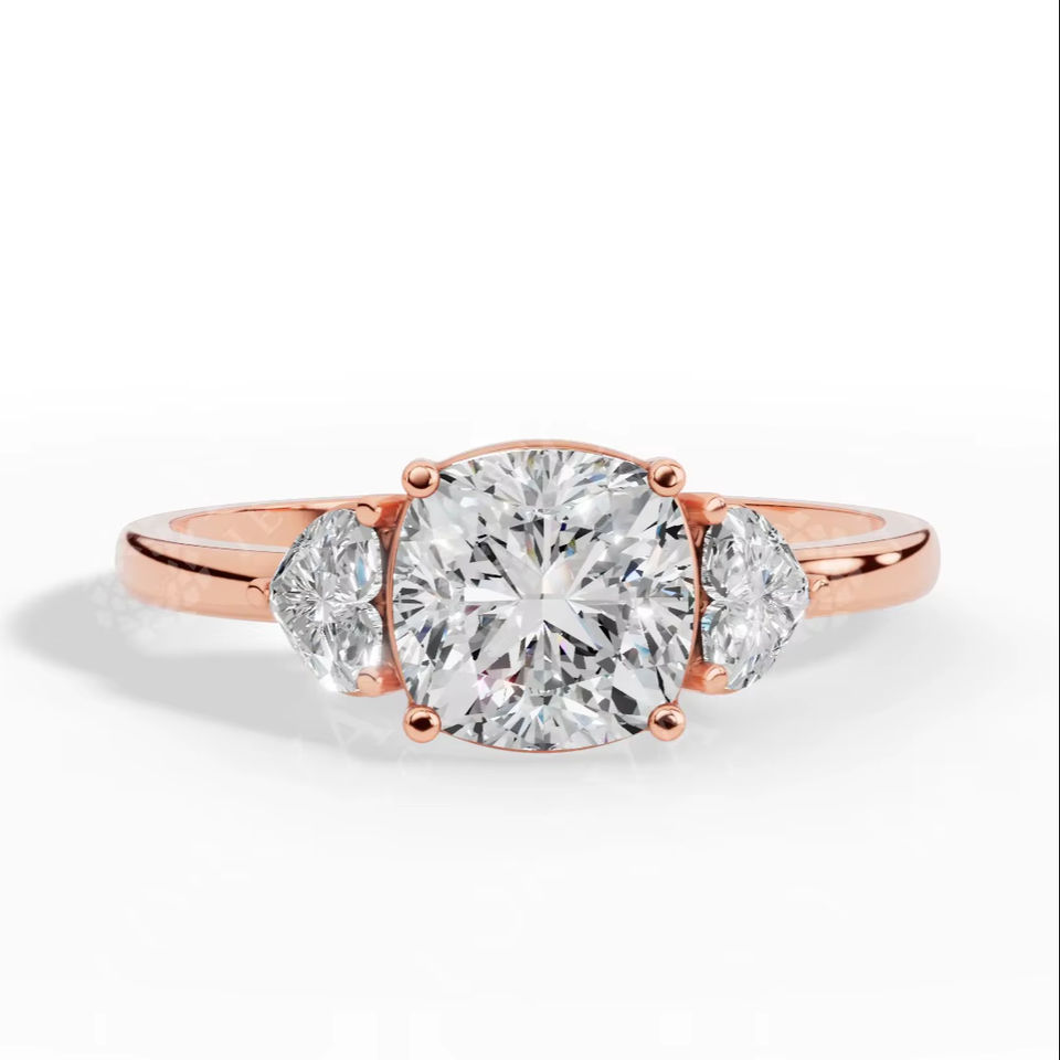 แหวนคู่ทรงคุชชั่นคัท พร้อมเพชรทรงหัวใจแบบโซลิแทร์ เพชรเลี้ยงในห้องปฏิบัติการ ทอง 10K ขายส่ง OEM ผู้ผลิตเครื่องประดับชั้นดี ผู้จัดจำหน่าย