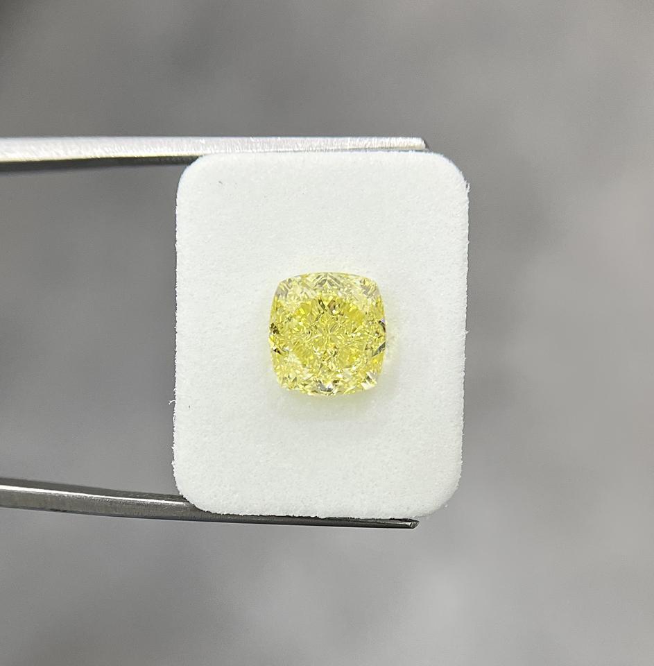 เบาะ VVS2สีเหลืองใสเหมาะสำหรับการเจียระไนแบบเพชรทรงหลวมจากธรรมชาติที่ผ่านการรับรอง3.63กะรัตน้ำยาเคลือบเงา VG สมมาตร61% MED