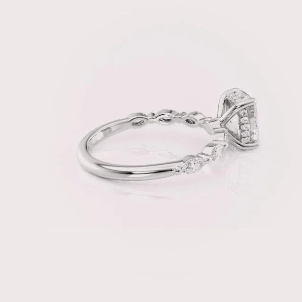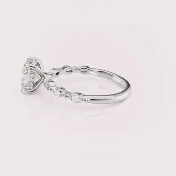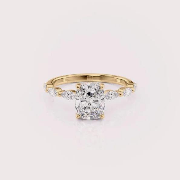 แหวนหมั้นเพชรทรงคุชชั่นคัท เพชรเลี้ยงในห้องปฏิบัติการ ตัวเรือนทองคำขาว/โรสโกลด์/เหลือง 18K ประดับเพชรเม็ดเดี่ยวพร้อมเพชรข้าง