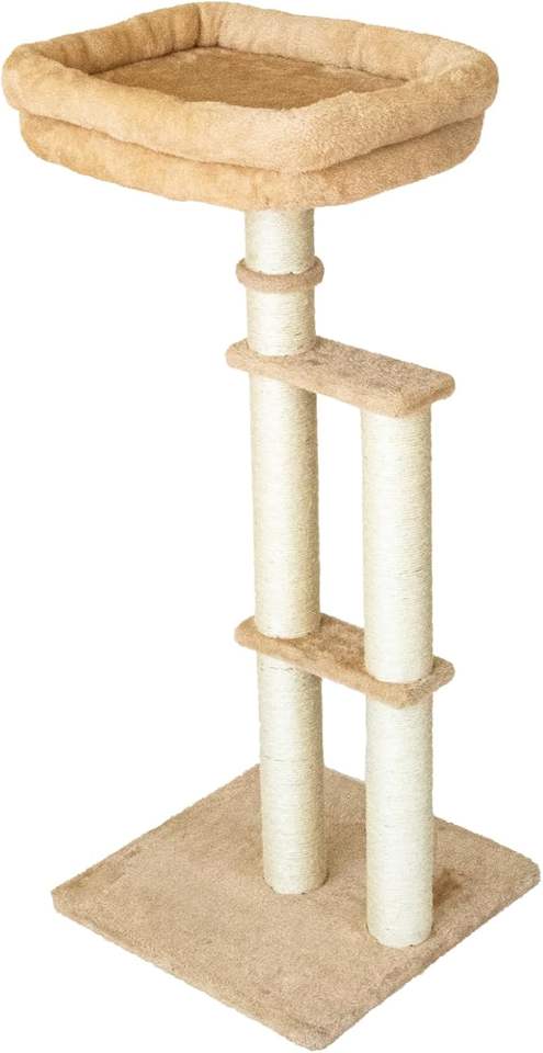 ที่นอนแมวแบบมีเบาะป้องกัน พร้อมที่ลับเล็บ ขนสัตว์ ที่ลับเล็บแบบซิซอลคู่ ต้นไม้/หอคอยแมว ปรับความสูงได้ 24" ถึง 40" ที่นอนกำมะหยี่