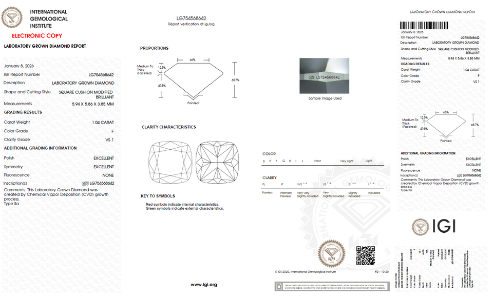 1.00 Carat Cushion Shape Lab Grown Diamond VS Clarity EF Color Loose Diamond for Jewelry Making from Manufacturer