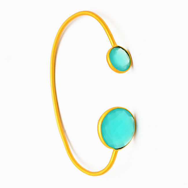 อัญมณีหินควอตซ์925กำไลชุบทองเงินอัญมณีสำหรับผู้หญิง