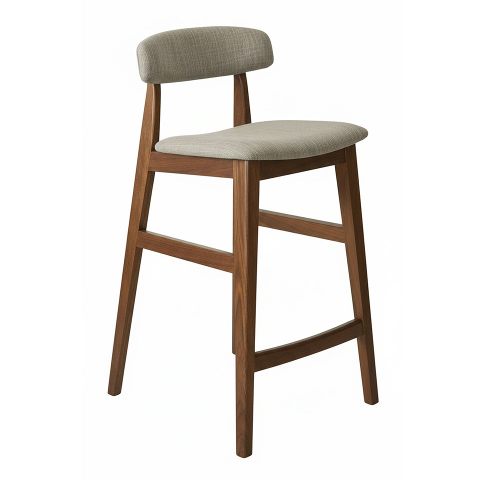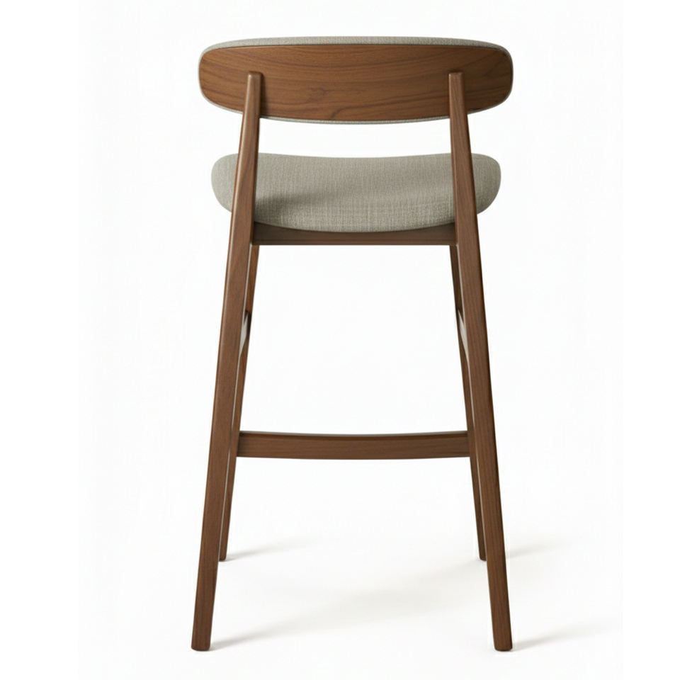 เก้าอี้บาร์ทรงแจ็ค ดีไซน์สแกนดิมินิมอล วัสดุไม้สักคุณภาพพรีเมียม พร้อมพนักพิงบุนุ่ม รุ่นขายดีที่สุดสำหรับโรงแรมสไตล์ฟาร์มเฮาส์ ออกแบบตามหลักสรีรศาสตร์
