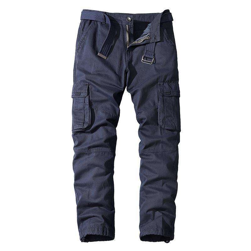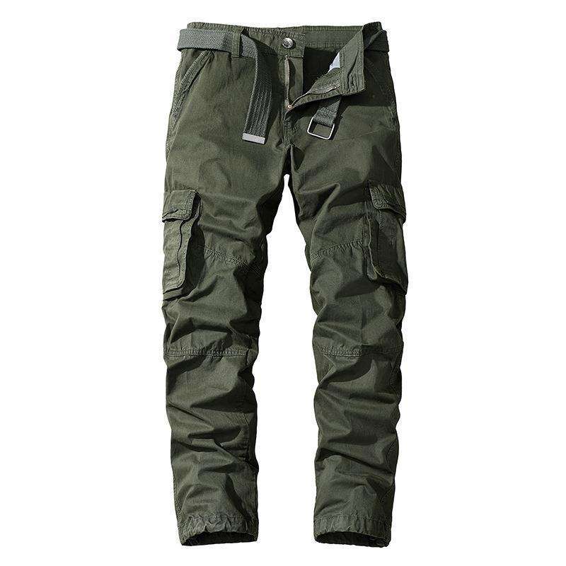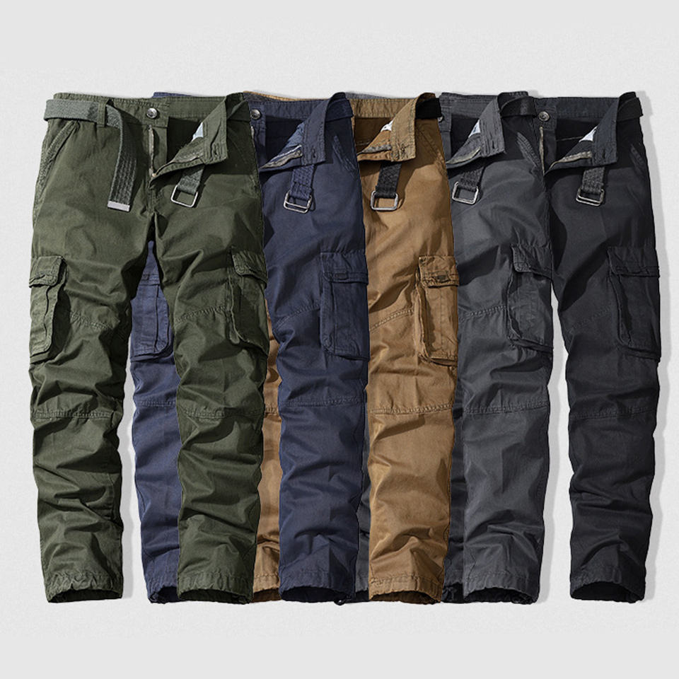 Cusstom กางเกงผู้ชายผ้าฝ้ายมีกระเป๋าหลายช่อง, กางเกงขายาวลำลองสีล้วนสำหรับใส่กลางแจ้ง