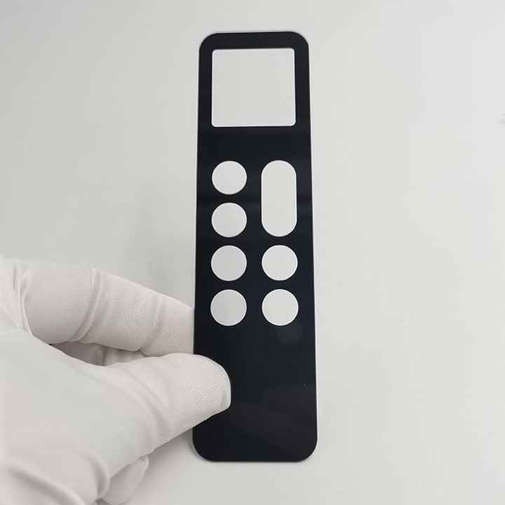 0.8 0.7แบบกำหนดเอง1.0 1.1มม. ฝาครอบกระจกนิรภัยสำหรับรีโมทคอนโทรลขอบ2.5D ขัดเงาป้องกันรอยขีดข่วนและรูตัดอย่างแม่นยำ