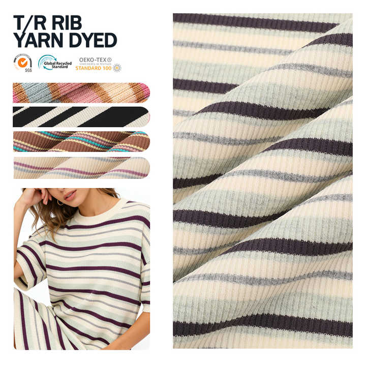 ผ้าถักลายริบยืดหยุ่นเนื้อหนา ผลิตตามสั่ง ขนาด 1*1 1x1 2*1 2*2 3x2 ย้อมเส้นด้าย ลายทาง แบบพอยน์เทล อินเตอร์ล็อค ผสมเรยอนและสแปนเด็กซ์
