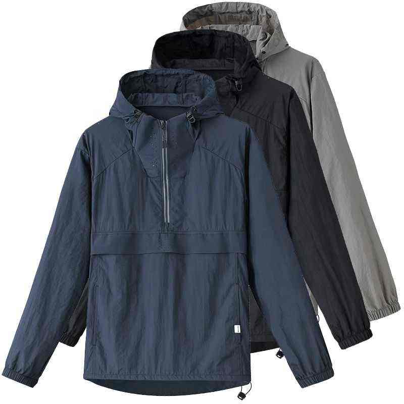เสื้อแจ็คเก็ตกันลมแบบมีซิปครึ่งตัว น้ำหนักเบา กันน้ำ ลายพราง สำหรับฤดูใบไม้ผลิ เหมาะสำหรับกิจกรรมกลางแจ้ง เคลือบผิวเพื่อประสิทธิภาพ