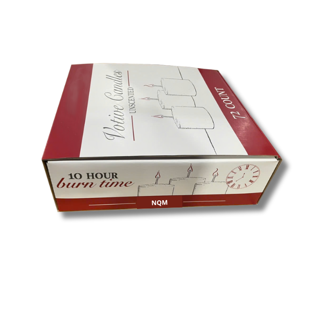 Packaging Description:72 Pressed Votive Candles in a Cardboard Box