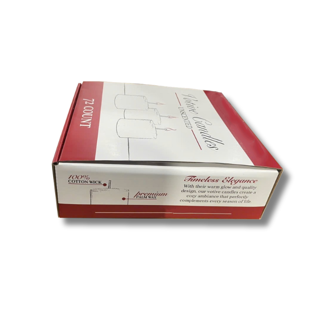 Packaging Description:72 Pressed Votive Candles in a Cardboard Box