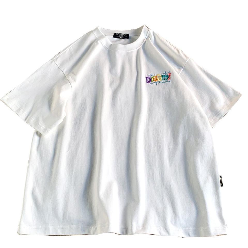 เสื้อยืดผู้ชายผ้าฝ้าย 100% 200gsm สไตล์ลำลองสตรีทแวร์ ทรงหลวม ปักลายดอกไม้ ระบายอากาศดี ทรงแบ็กกี้ รับปักลายตามสั่ง
