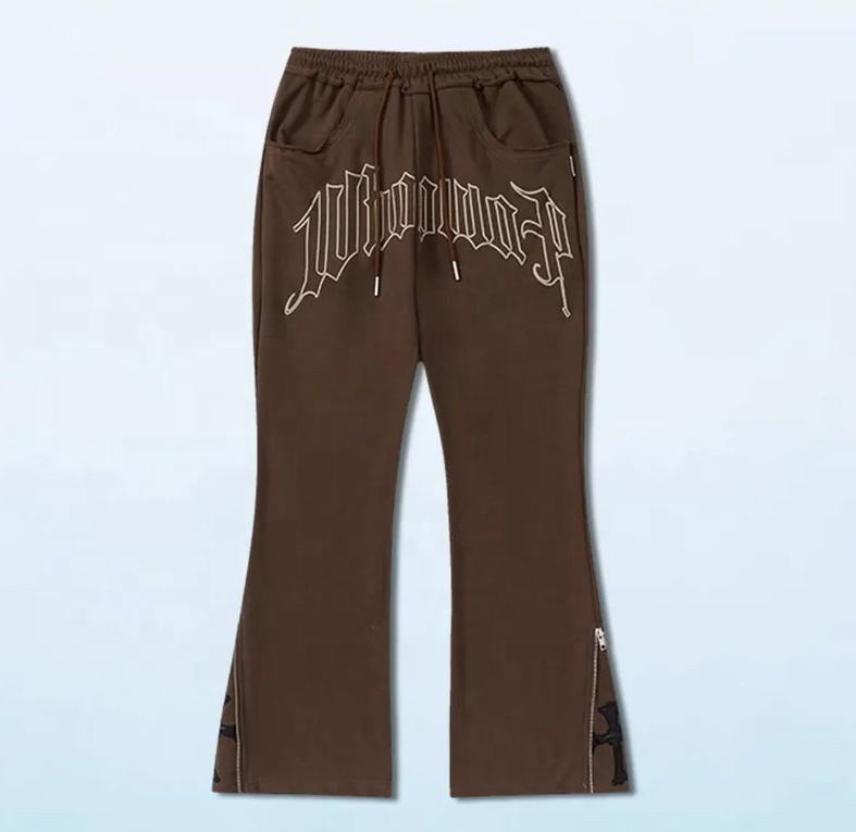 กางเกงวิ่งของผู้ชายผ้าคอตตอนปักลายตัวอักษรวินเทจโฟมพิมพ์3D คุณภาพสูงสำหรับพิมพ์พัฟ