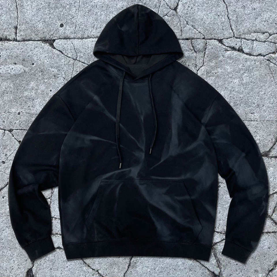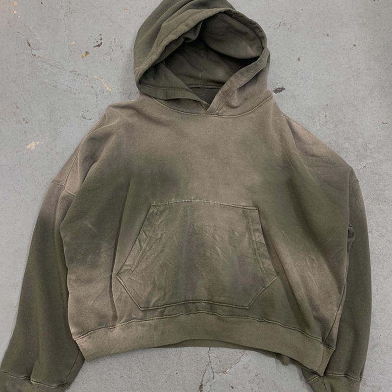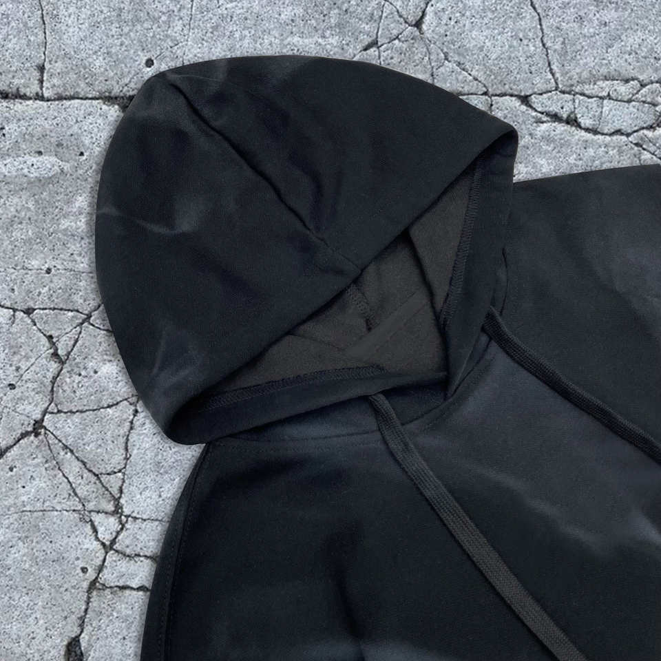 เสื้อฮู้ดดี้ทรงบ็อกซี่ผ้าฝ้าย 100% แบบครอปสำหรับผู้ชาย สไตล์วินเทจฮิปฮอป พิมพ์ลายโลโก้ด้านหน้า ปักลายขนาดใหญ่พิเศษ ไซส์พลัสสำหรับผู้ชาย