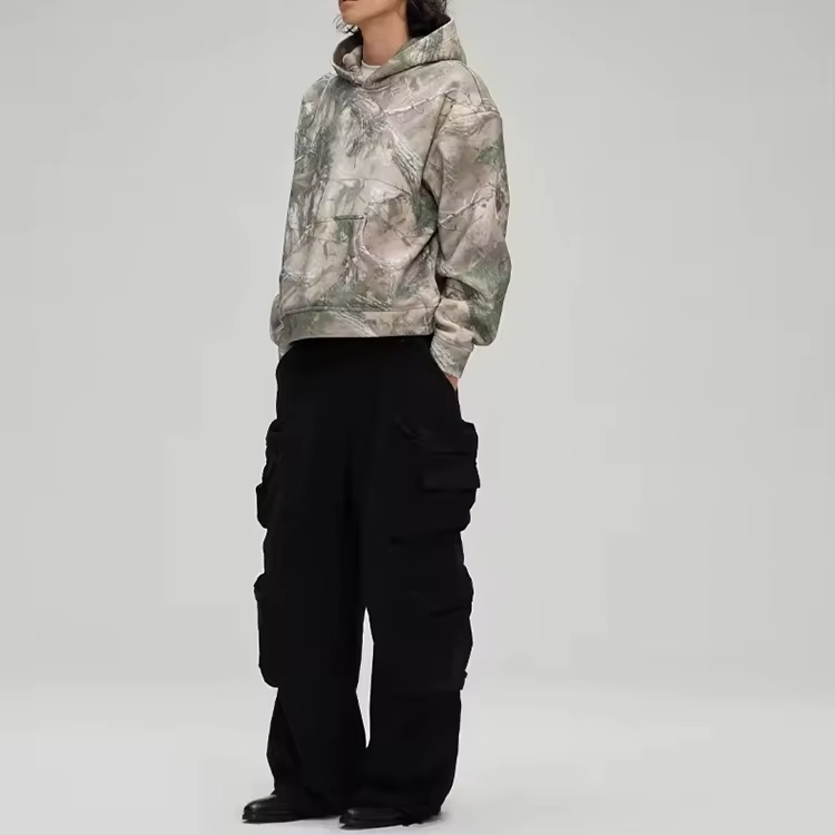 ผู้ผลิตเสื้อฮู้ดดี้ลายพรางผ้าฝ้าย 100% แบบสั่งทำพิเศษ พิมพ์ลายใบไม้ สไตล์วินเทจ ลุคซักซีด