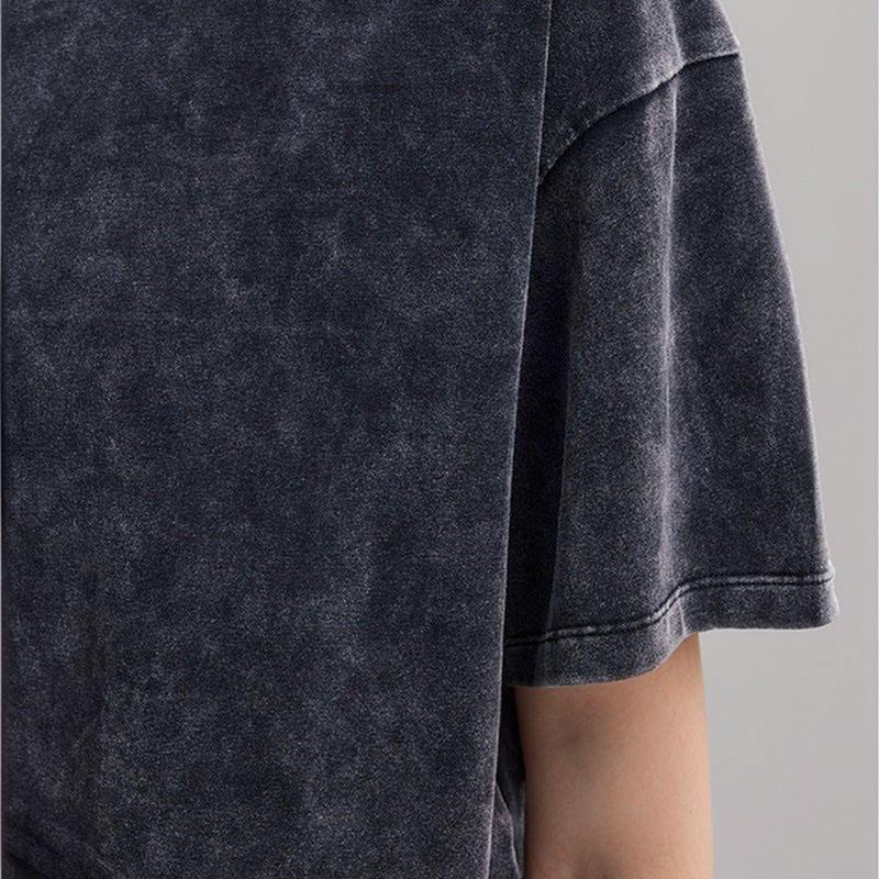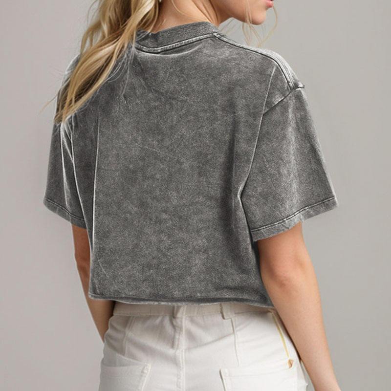 เสื้อยืดครอปไหล่ตกคุณภาพสูงสำหรับผู้หญิงเสื้อยืดครอปไหล่แบบย้อนยุคเสื้อผ้าแนวสตรีทซักด้วยกรดทำจากผ้าฝ้าย100% ตามสั่ง