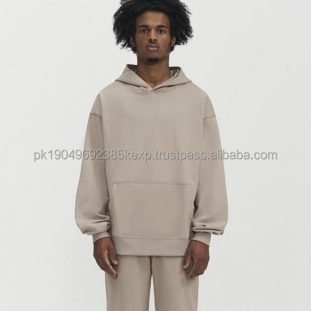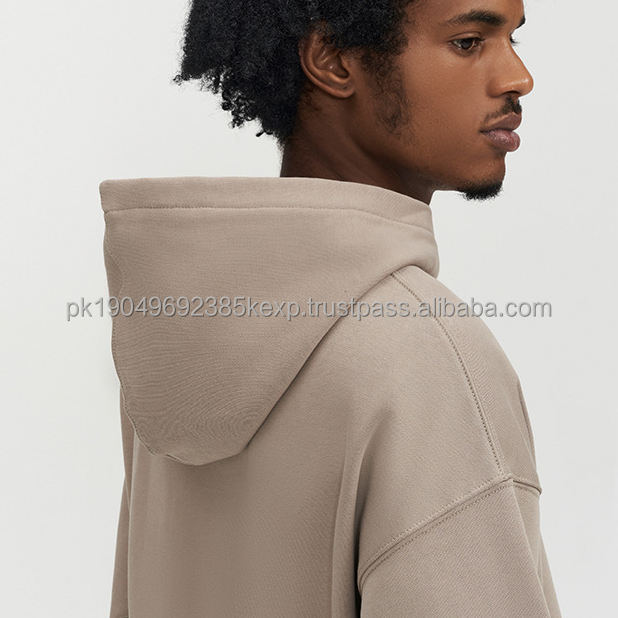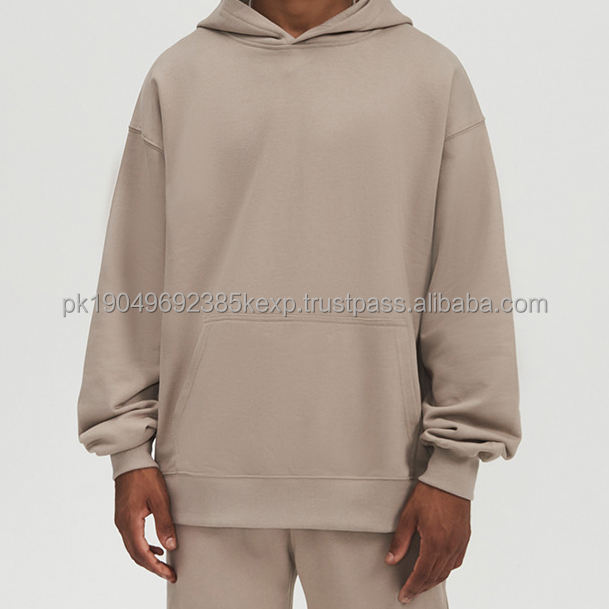 เสื้อฮู้ดดี้ผู้ชายแบบสวมหัว ผ้าฝ้าย 100% ทรงหลวม ไม่มีเชือก รุ่นเรียบง่าย ไม่มีลาย