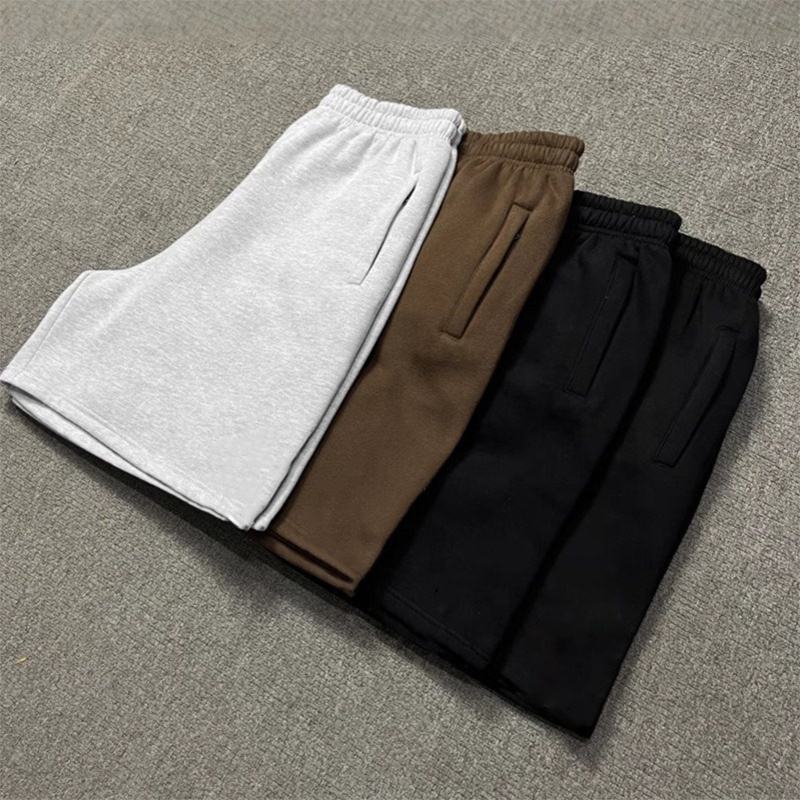 กางเกงขาสั้นผ้าฟลีซผ้าฝ้ายสำหรับผู้ชายกางเกงเรียกเหงื่อแบบลำลองเชือกยาวเอวยางยืดลายสตรีทแวร์ตามสั่ง100%