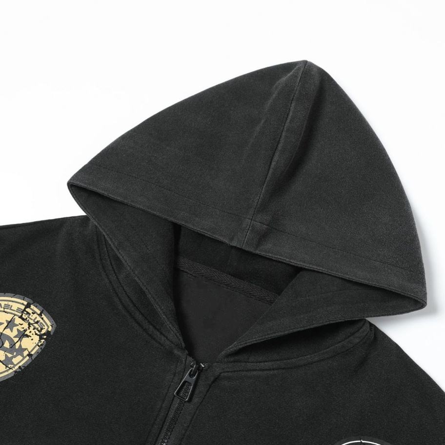 เสื้อฮู้ดดี้ซิปแบบครอป ทรงโอเวอร์ไซส์ ผ้าเฟรนช์เทอร์รี่ 100% ผ้าฝ้าย พิมพ์ลายสกรีน สำหรับทุกเพศ