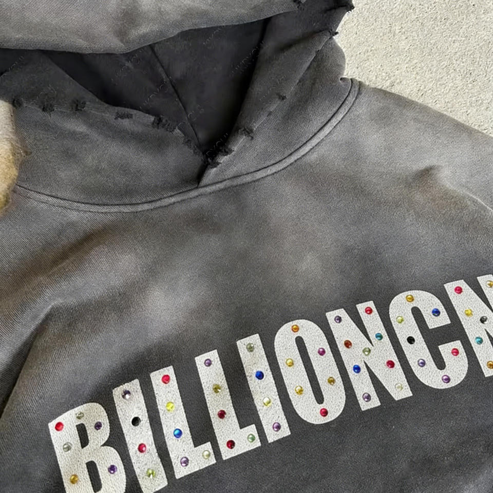 เสื้อมีฮู้ดผ้าฝ้าย100% กำหนดได้เองใส่ได้ทั้งชายและหญิงทรงพอดีตัวปกติซักด้วยกรดซีดกันแดดฤดูร้อนลาย3D วินเทจประดับพลอยเทียม