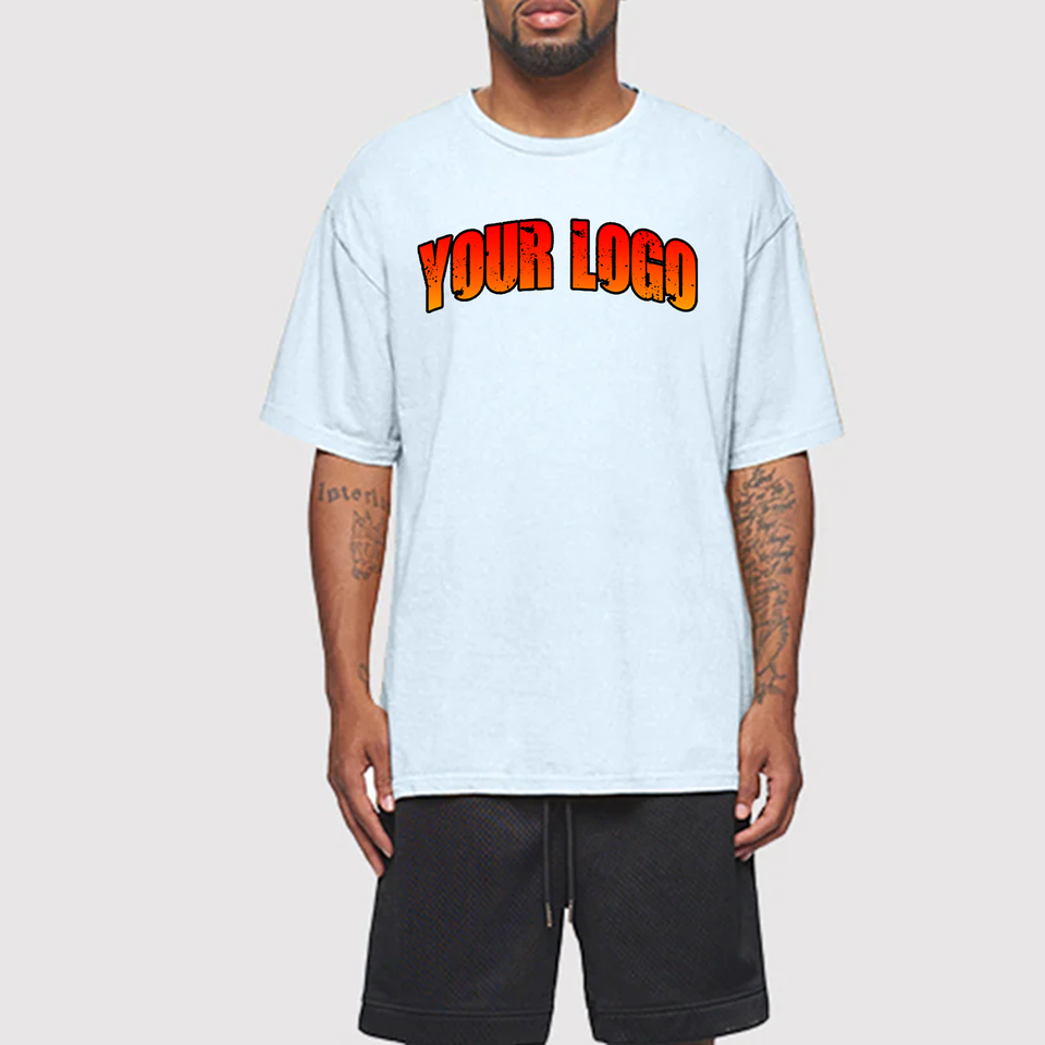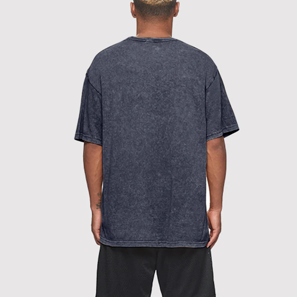 เสื้อยืดคอตตอน 100% ทรงวินเทจ น้ำหนักปานกลาง สีดำฟอก ทรงโอเวอร์ไซส์ ล้างสีแบบแอซิด พิมพ์ลายดิจิทัล สำหรับผู้ชาย