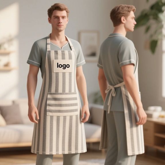 ผ้ากันเปื้อนผ้าฝ้ายแบบมีกระเป๋าผ้ากันเปื้อนแบบสั่งทำสีดำลายทางหลากสี100% ได้ตามต้องการมีกระเป๋าผ้ากันเปื้อนแบบสั่งทำ