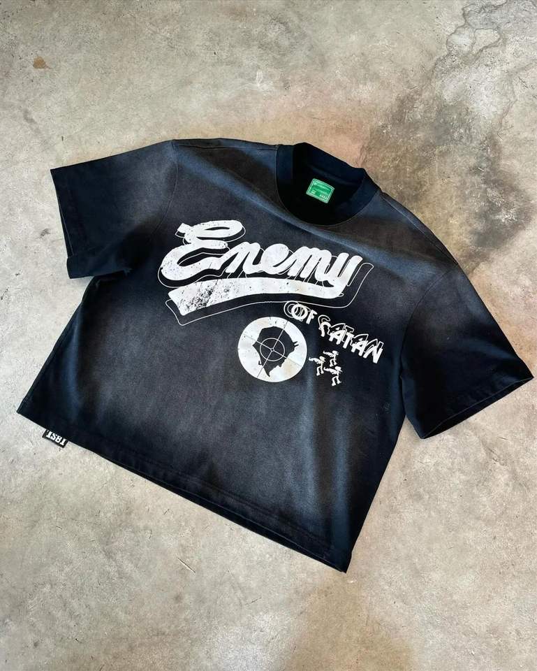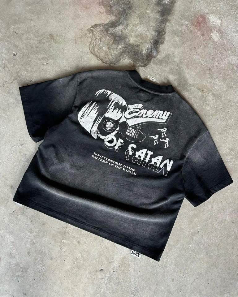 เสื้อยืดผู้ชายโอเวอร์ไซส์ผ้าคอตตอนฟอกสีกรด300 GSM ฟอกสี100% ตามสั่ง