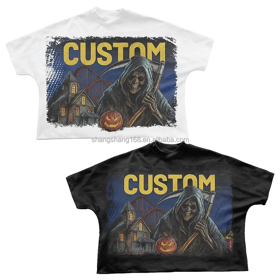 Custom 100% Cotton Silk Screen Printed Tee Streetwear Graphic Heavyweight Boxy Fit Acid Washed Double Layer T-Shirt Worsted