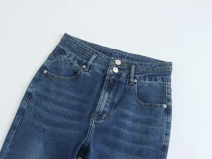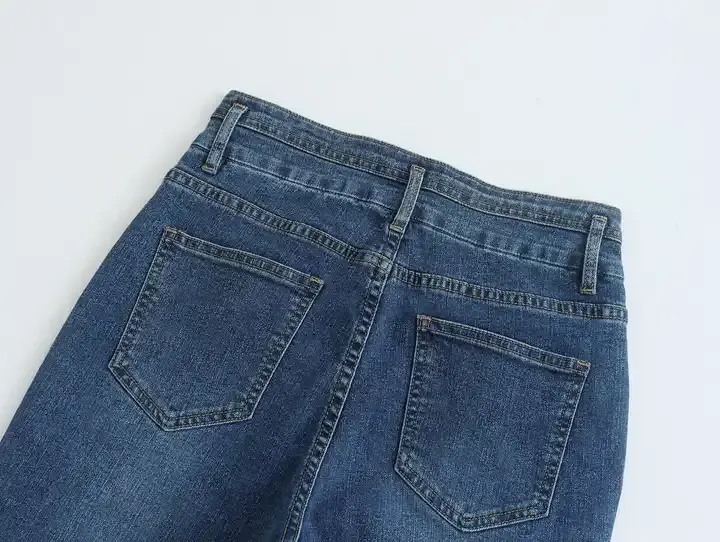 กางเกงยีนส์เดนิมสีน้ำเงินทรงตรงเอวกลางผ้าฝ้ายแท้ 100% ซักแล้ว ทรงปกติ แห้งเร็ว สไตล์เรโทร แฟชั่นลำลอง ทันสมัย