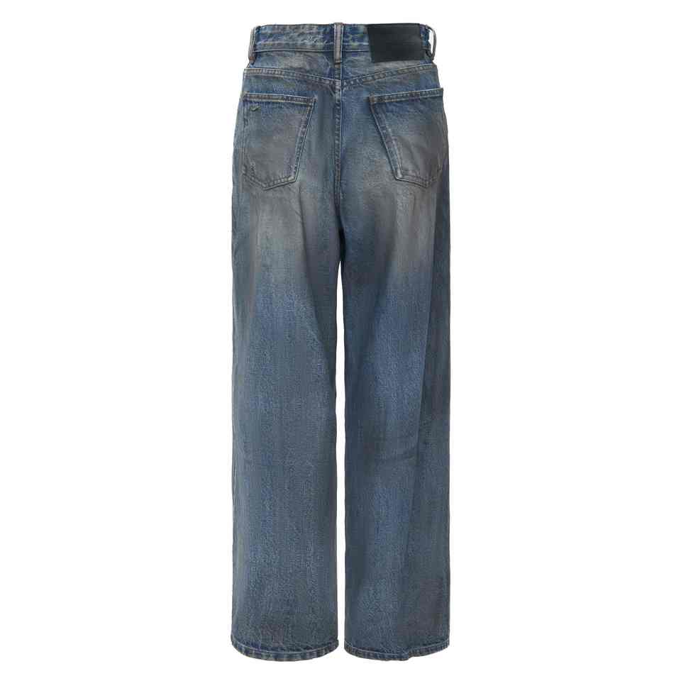 กางเกงยีนส์ขาตรงขากว้างสำหรับผู้หญิงกางเกงยีนส์สีฟ้าทรงหลวมขาตรงสำหรับใส่เล่น100% ออกแบบได้ตามต้องการ