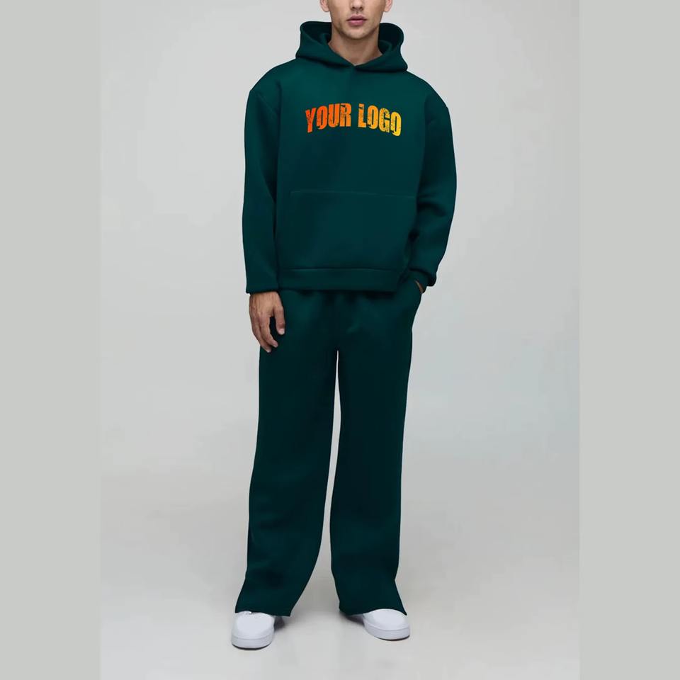 Custom 100% Cotton Winter Hooded Solid Stripe Fleece Heavyweight Tracksuit for Men High Quality 2-Piece Set Breathable Jogging