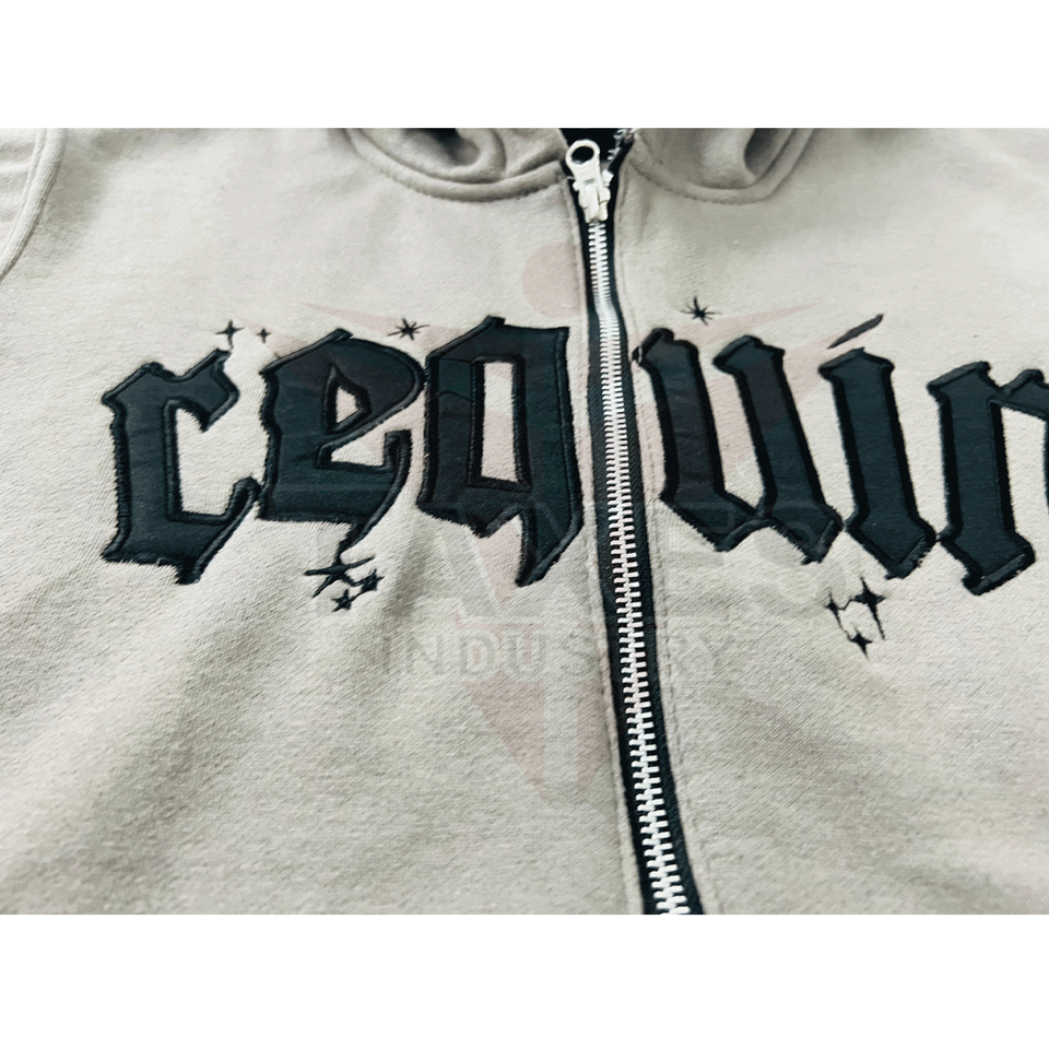 เสื้อฮู้ดครอปผู้หญิงผ้าฝ้าย 100% สไตล์สตรีทแวร์สำหรับฤดูหนาว แบบซิป มีโลโก้สั่งทำ ประดับคริสตัล ทรงโอเวอร์ไซส์