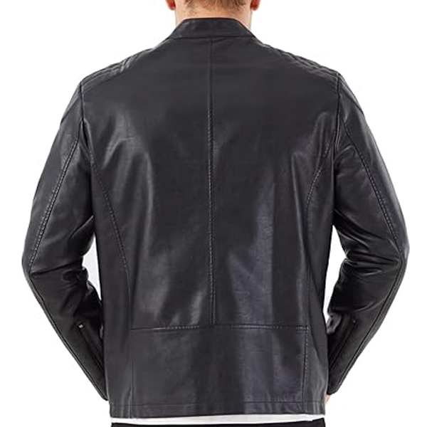 แจ็กเก็ตหนังแท้สำหรับผู้ชายทรงสลิมฟิตพร้อมโลโก้ด้านหน้าแบบลำลองปิดแบบซิปสำหรับฤดูหนาว100% ออกแบบได้ตามต้องการ