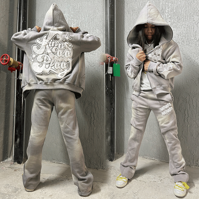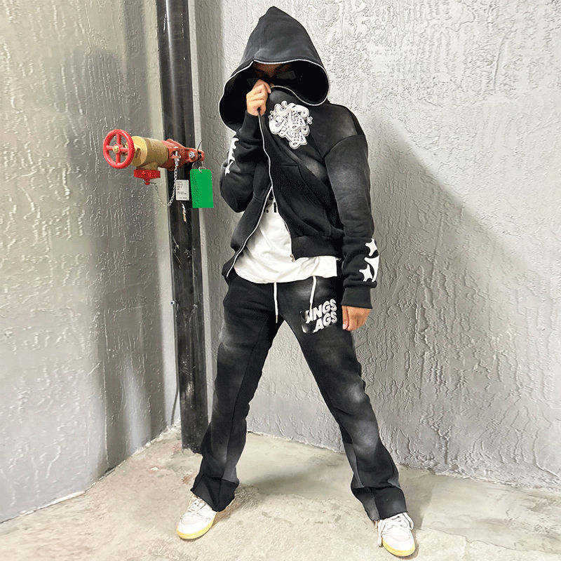 ชื่อสินค้า:ชุดวอร์มผู้ชายแบบซิป สไตล์ซักฟอกกรด ออกแบบตามสั่ง