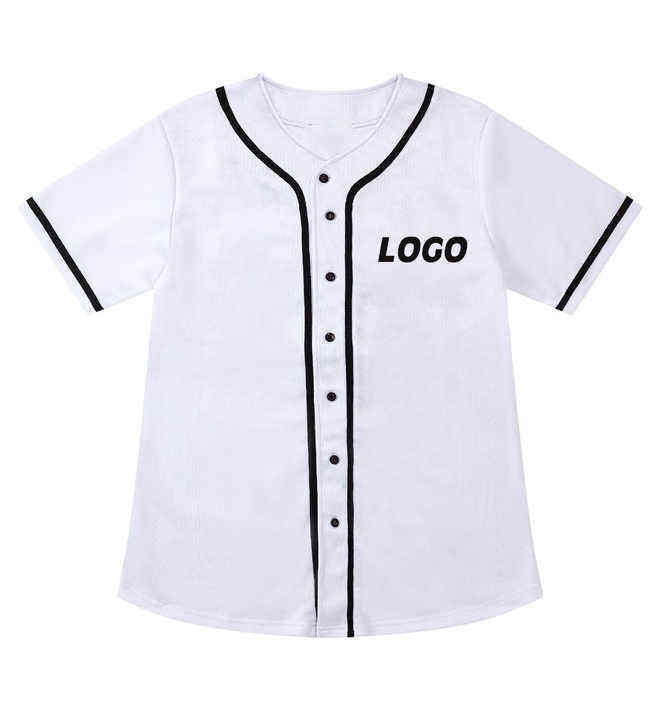 เสื้อเบสบอลคอวีระบายอากาศได้ดีของผู้ชายผ้าโพลีเอสเตอร์100% ตามสั่งด้วยการพิมพ์ดิจิตอล