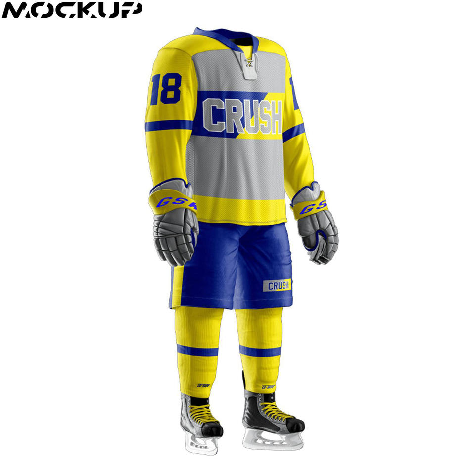 ชุดยูนิฟอร์มฮ็อกกี้น้ำแข็งทำจากโพลีเอสเตอร์รับชื่อและตัวเลขที่มีสไตล์ตาม100%