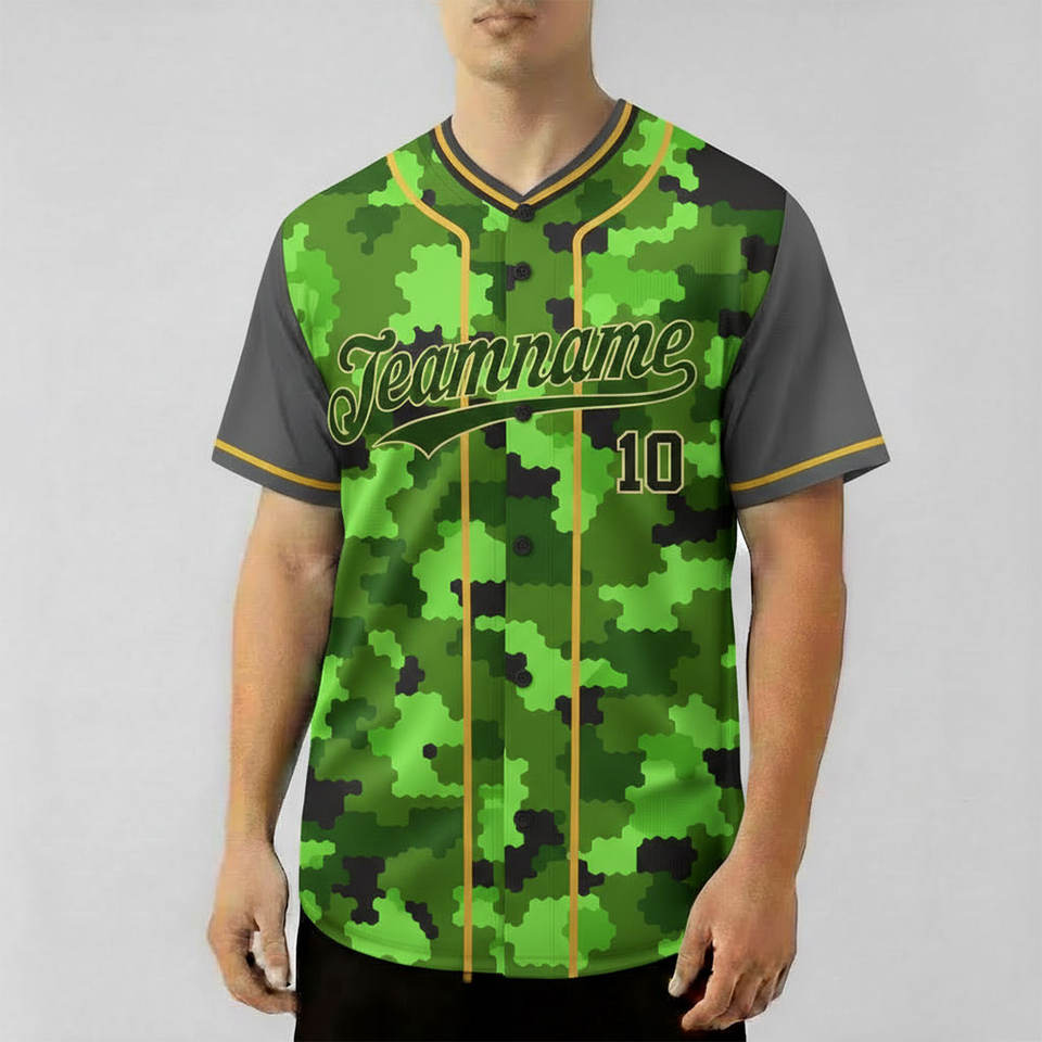 ชุดเบสบอลผู้ชายแบบซับลิเมชั่น ระบายอากาศได้ดี ผลิตจากโพลีเอสเตอร์ 100% ผ้าทวิลล์ พร้อมงานปัก แห้งเร็ว ติดกระดุมเต็มตัว