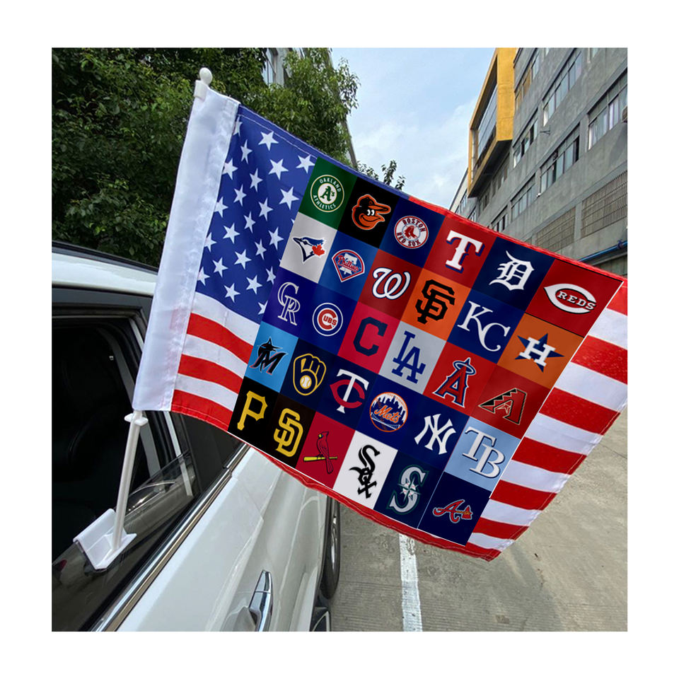 Custom 100% Polyester mlb Baseball Chicago Cubs Yankees Mets Giants ROYALS Houston Astros Car Window Flags With Flagpole
