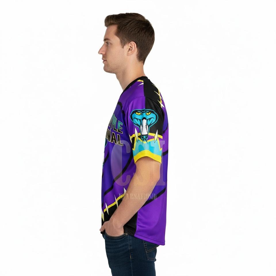 เสื้อกีฬาโพลีเอสเตอร์ 100% แบบสั่งทำพิเศษ ผลิตจากผ้าโพลีเอสเตอร์ 100% สำหรับผู้ชาย ด้วยเทคนิคการพิมพ์แบบซับลิเมชั่น