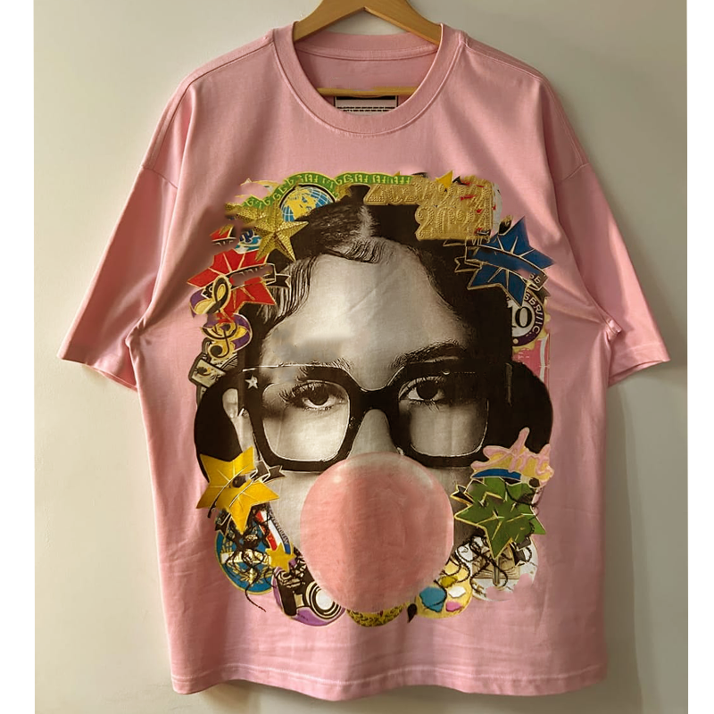 เสื้อยืดคอกลมโอเวอร์ไซส์ ยูนิเซ็กซ์ ผ้าคอตตอนเทอร์รี่แท้ 100% น้ำหนัก 350 กรัม พิมพ์ลายซิลิโคน ทรงหลวม ตัดสั้น ดีไซน์กราฟิก 3 มิติ คุณภาพสูง