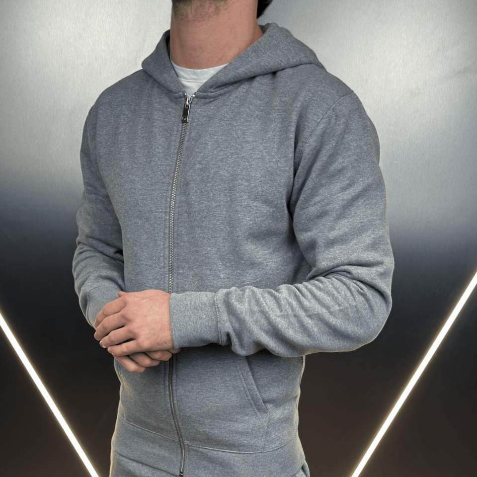 ชุดวอร์มผ้าดิเวอร์เนื้อนุ่ม 100% คอตตอนผสมโพลีเอสเตอร์ ทรงหลวมสำหรับผู้ชาย แบบมีซิปยาวทั้งตัว ฮู้ดดี้ และกางเกงขายาวทรงตรง
