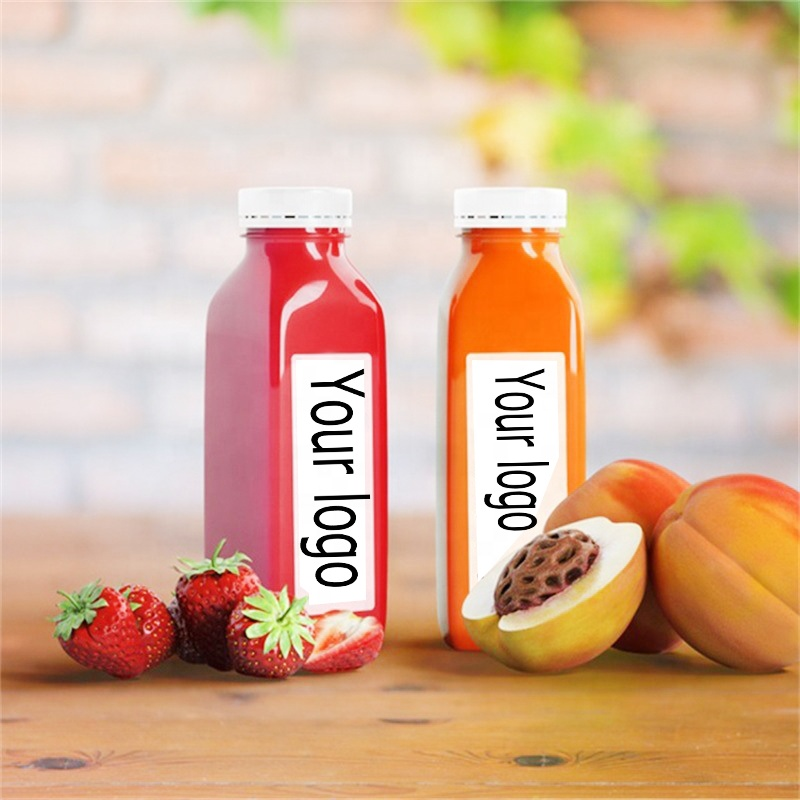 Custom 100ml 250ml 500ml 16oz 32oz square clear Plastic Bottles for Juice Business Empty Plastic Juice Bottles with Cap
