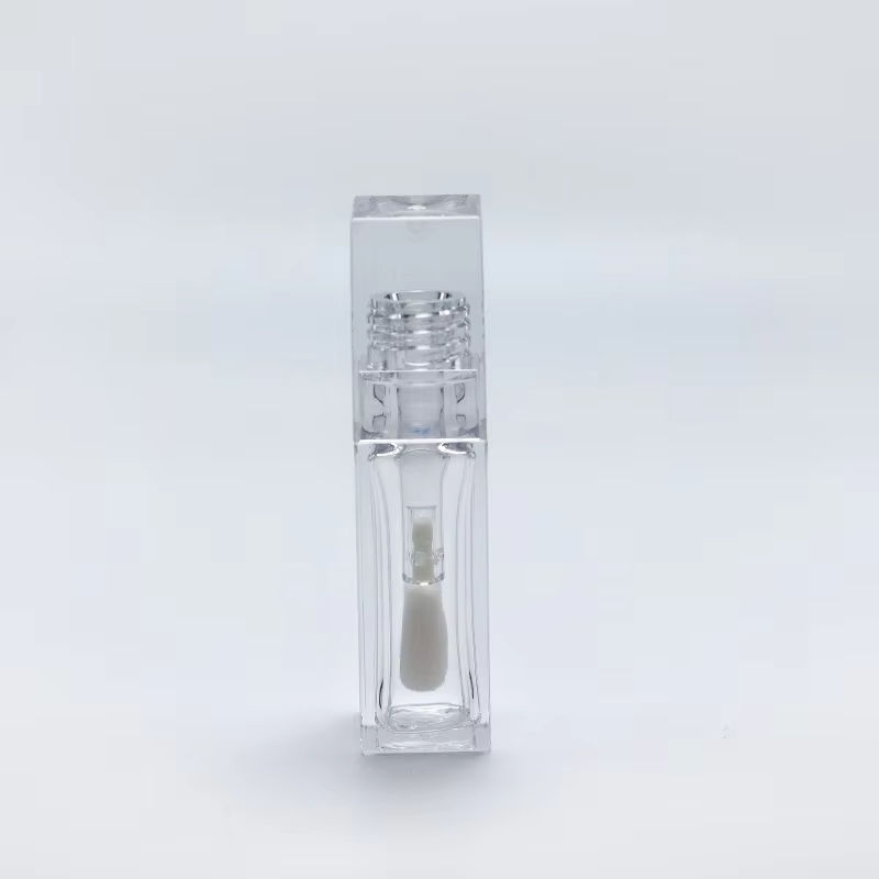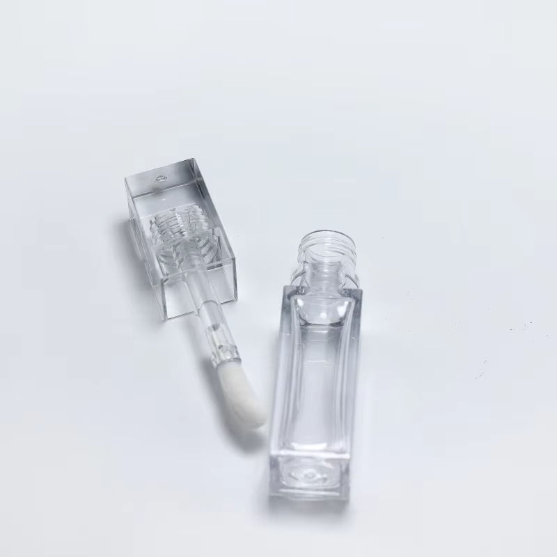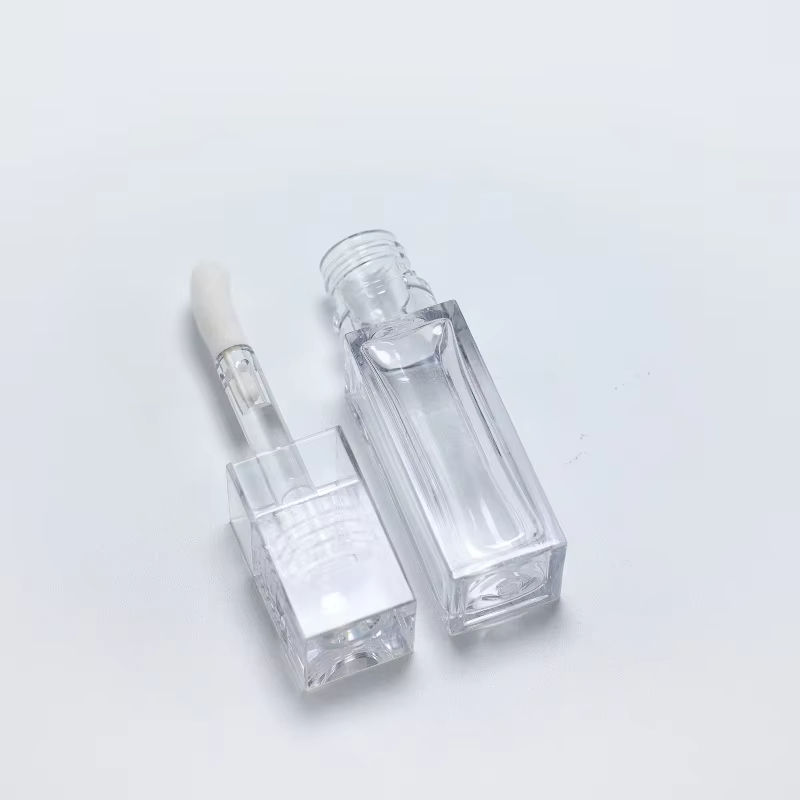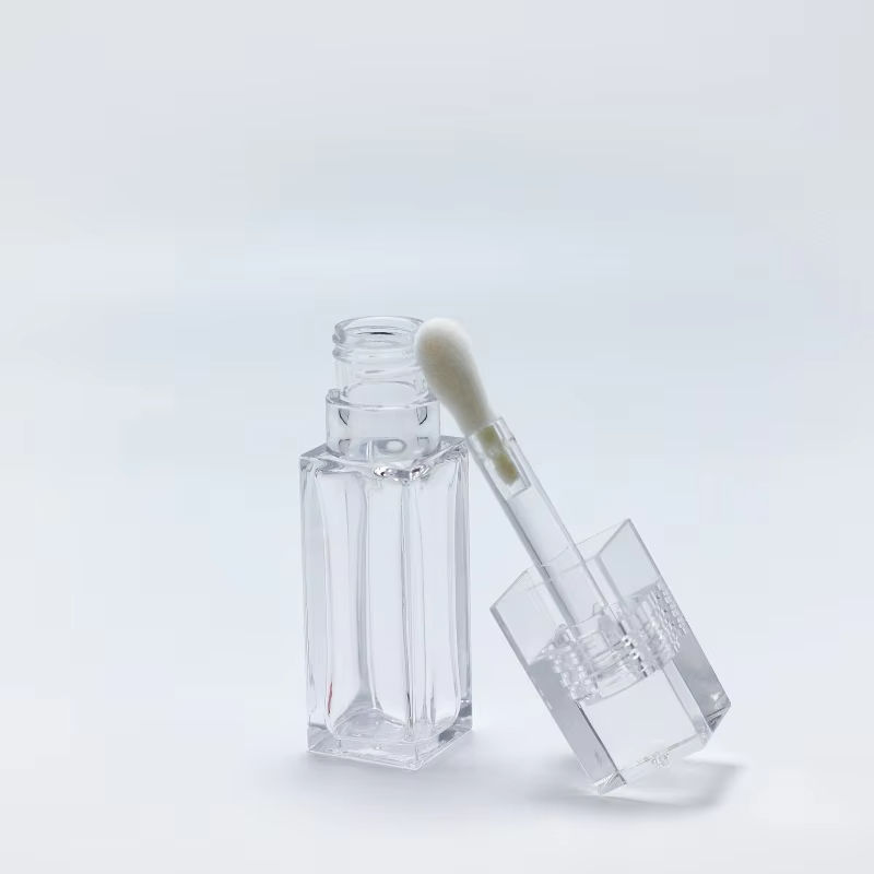 หลอดลิปกลอสใสทรงเหลี่ยมขนาด 10 มล. แบบกำหนดเอง บรรจุภัณฑ์หลอดเครื่องสำอางสำหรับลิปสติก บลัชออน ลิปกลอส พร้อมแปรงขนาดใหญ่