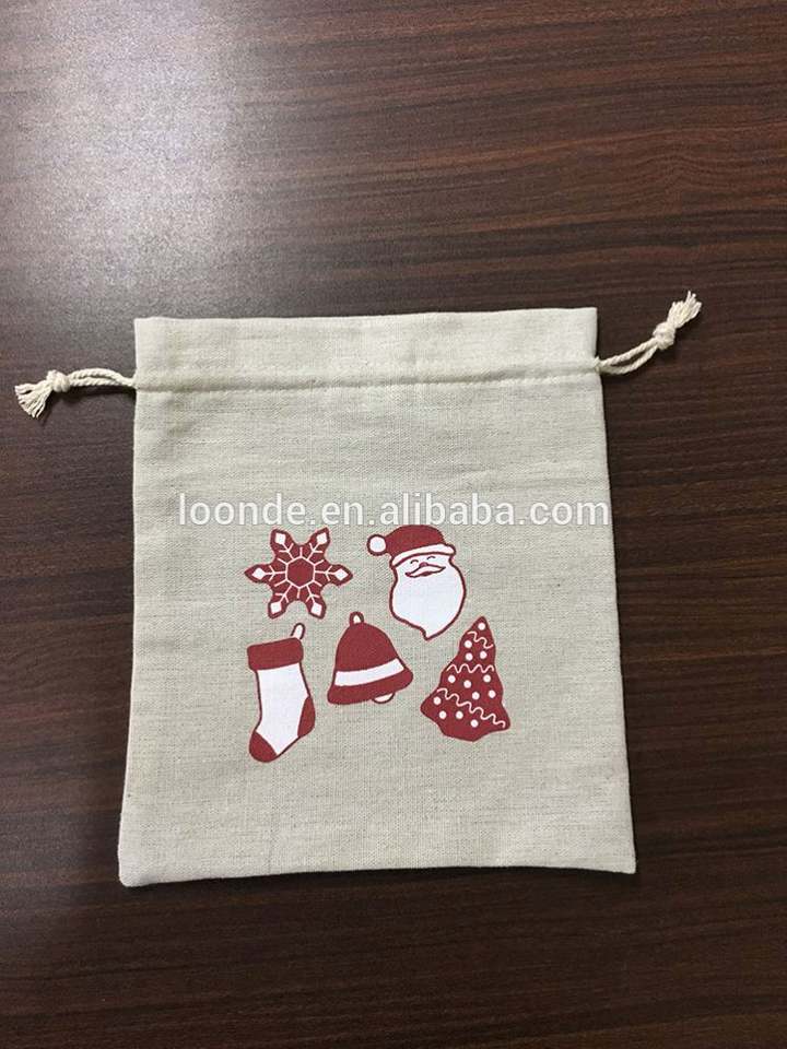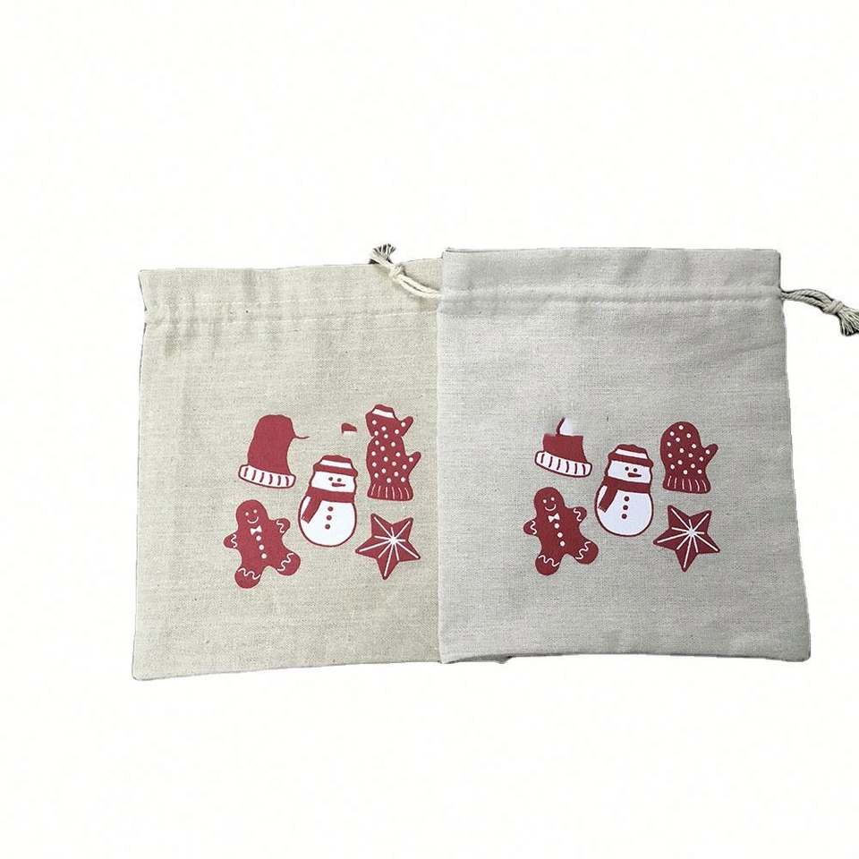 ถุงผ้ารูดเชือกขนาด 11x14 ซม. ย่อยสลายได้ พิมพ์ลายคริสต์มาส ผ้าลินินปอกระเจา พิมพ์สกรีน ราคาถูก สำหรับใส่ของขวัญผ้าฝ้าย ผ้าไหม พร้อมโลโก้