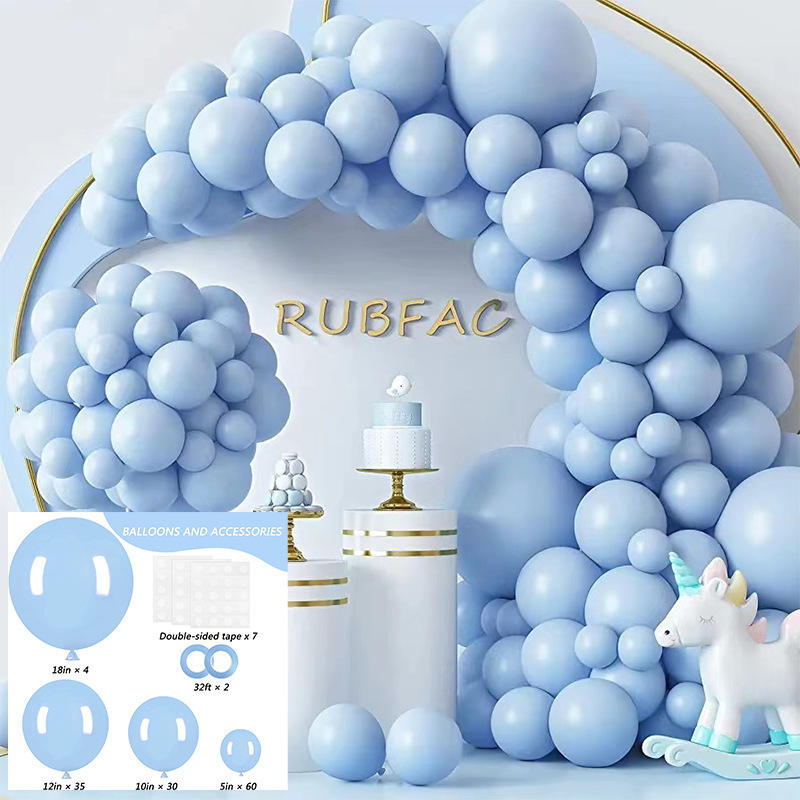 ลูกโป่งลาเท็กซ์สีฟ้าพาสเทลขนาด 12 นิ้ว 129 ชิ้น แบบกำหนดเอง พร้อมลูกโป่งคอนเฟตติ สำหรับงานเลี้ยงเฉลิมฉลองเปิดเผยเพศลูกน้อย ชุดตกแต่งซุ้มโค้ง คริสต์มาส