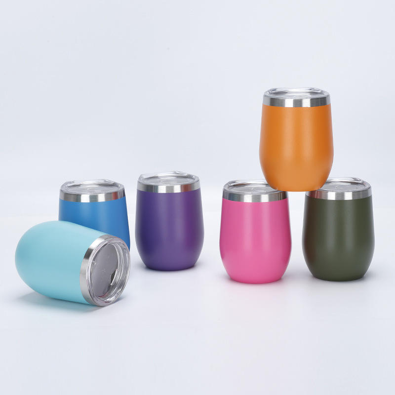 แก้วเก็บความเย็นสุญญากาศสแตนเลสทรงไข่ ขนาด 12 ออนซ์ 350 มล. แบบมีฝาเลื่อน สีสันสดใส