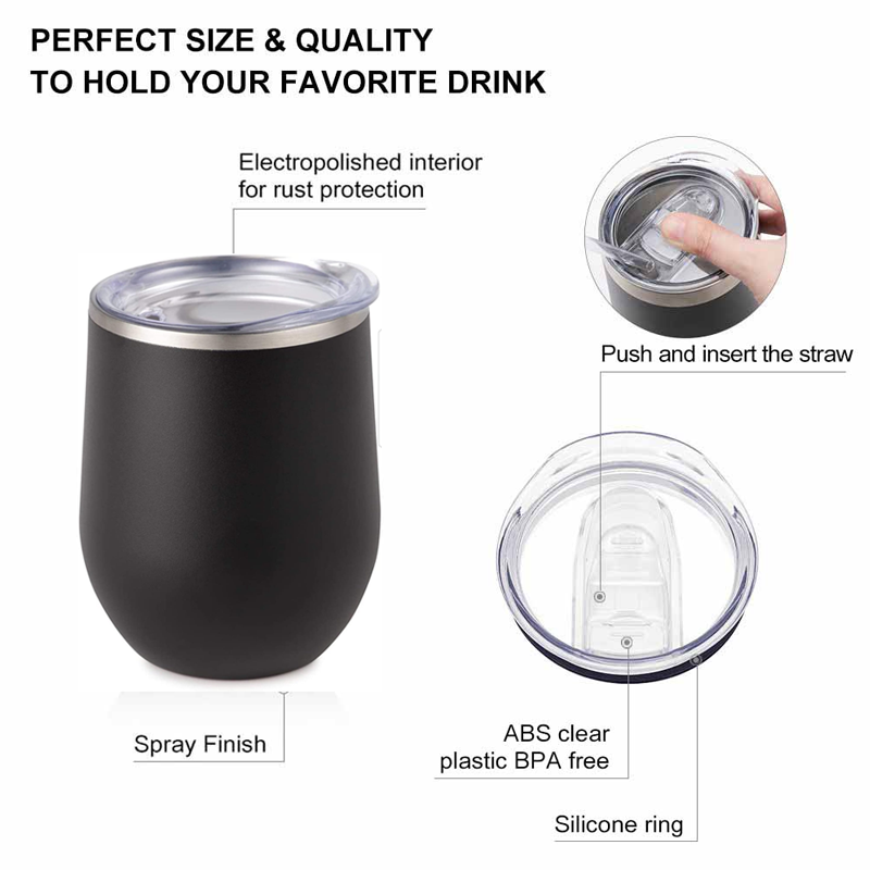 แก้วกาแฟสแตนเลสแบบกำหนดเองขนาด 12 ออนซ์ แก้วเก็บความร้อนเคลือบสีฝุ่นขนาด 12 ออนซ์ พร้อมฝาเลื่อนและหลอด
