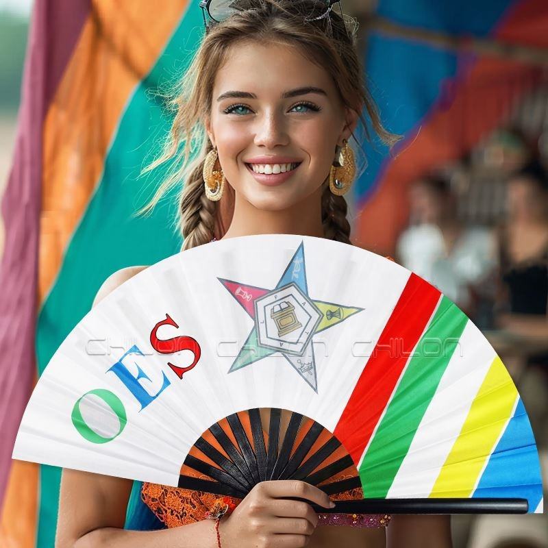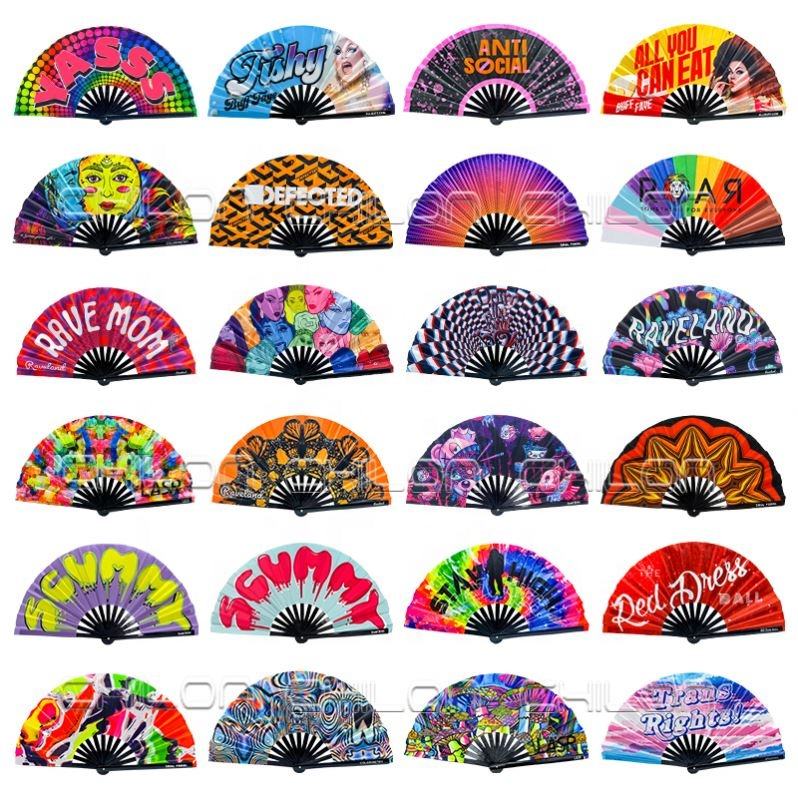 พัดลมพับได้ทำจากไม้ไผ่เรืองแสงยูวีขนาด13นิ้วพิมพ์ลายทำด้วยมือปรับแต่งโลโก้ได้ตามต้องการ