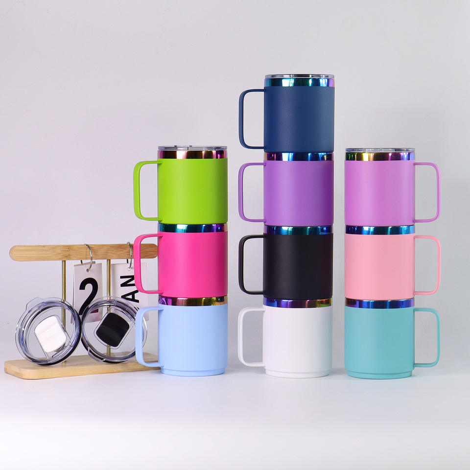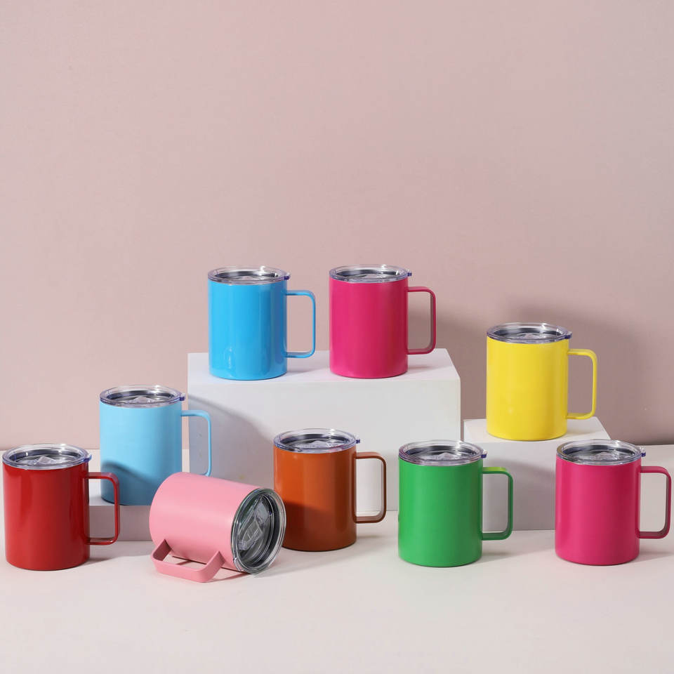 แก้วน้ำสแตนเลสแบบมีหูจับ ขนาด 14 ออนซ์, แก้วเก็บความร้อน, แก้วกาแฟสแตนเลสพร้อมฝาปิดและหูจับ, แก้วน้ำแบบมีหูจับขนาด 12 และ 14 ออนซ์
