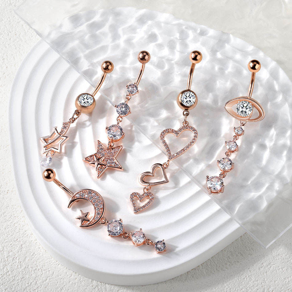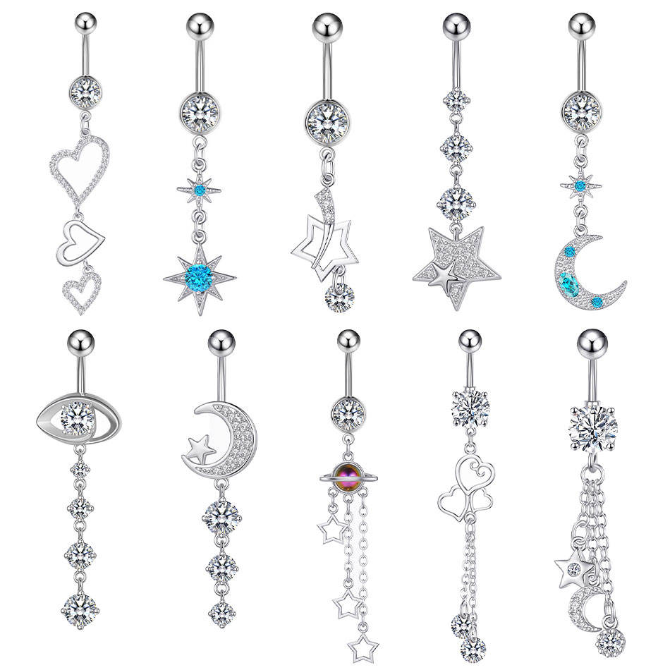 เครื่องประดับเจาะสะดือรูปหัวใจ ดาว พระจันทร์ ดีไซน์เก๋ ทำจากสแตนเลส 14G แบบห้อยระย้า สไตล์เซ็กซี่