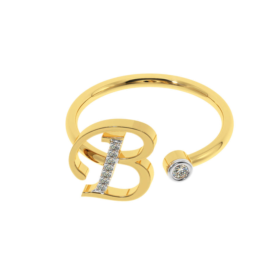 แหวนชื่อย่อประดับเพชรทอง14K/18K แหวนชื่อตัวอักษร B แบบกำหนดเองของขวัญแหวนเริ่มต้นสำหรับเธอ